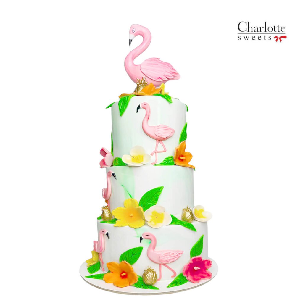 Add a special touch to your celebration by customizing your 3 Tier Flamingo Cake with the recipient’s name, making it truly memorable.