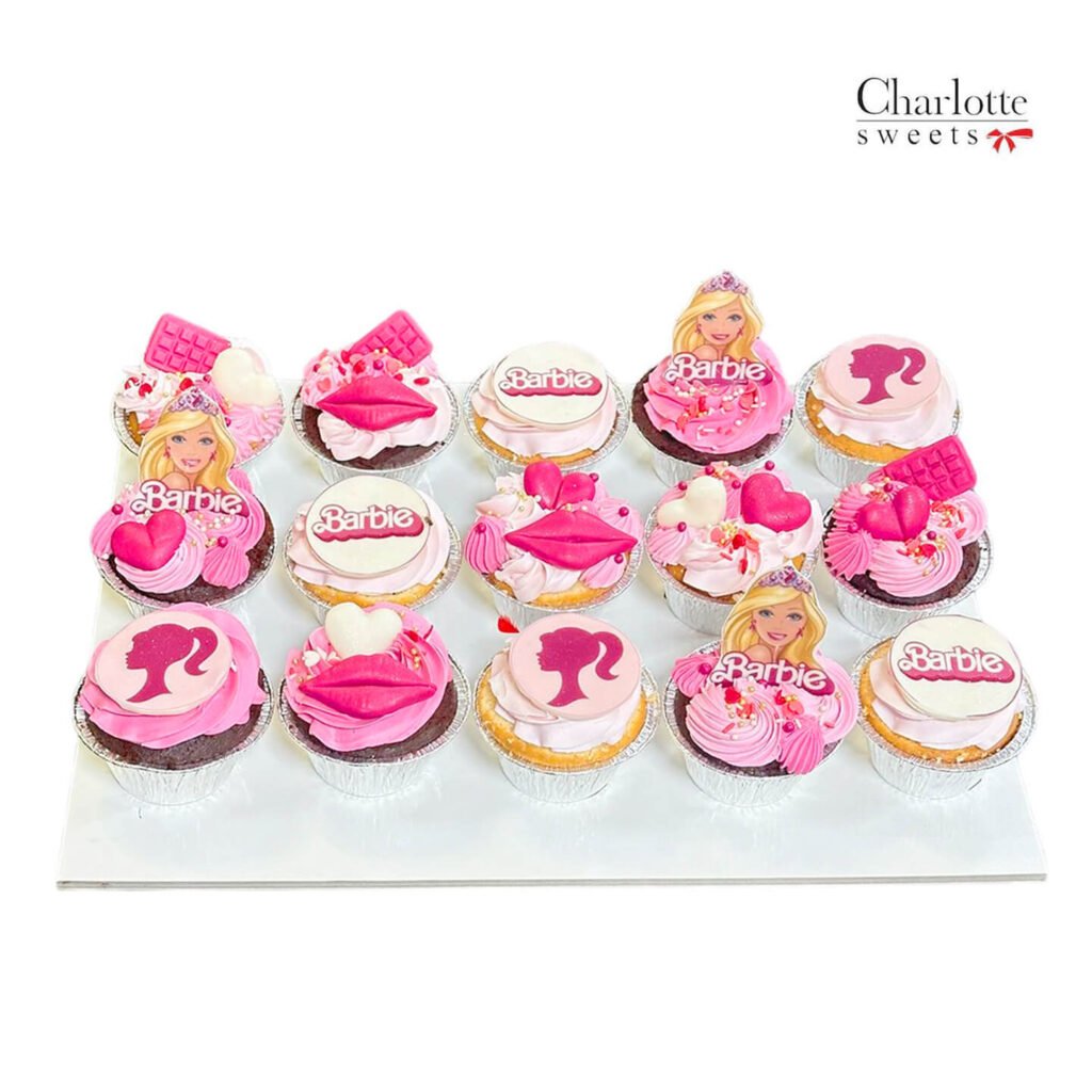This enchanting cupcake set is perfect for any little girl’s Barbie-themed birthday party. Each cupcake is adorned with adorable Barbie-inspired toppers, including the iconic Barbie silhouette, lips, and hearts. The cupcakes are frosted in shades of pink and topped with sprinkles and chocolate shards, creating a truly magical dessert. Order online for next-day delivery in Dubai, Sharjah, and Ajman.