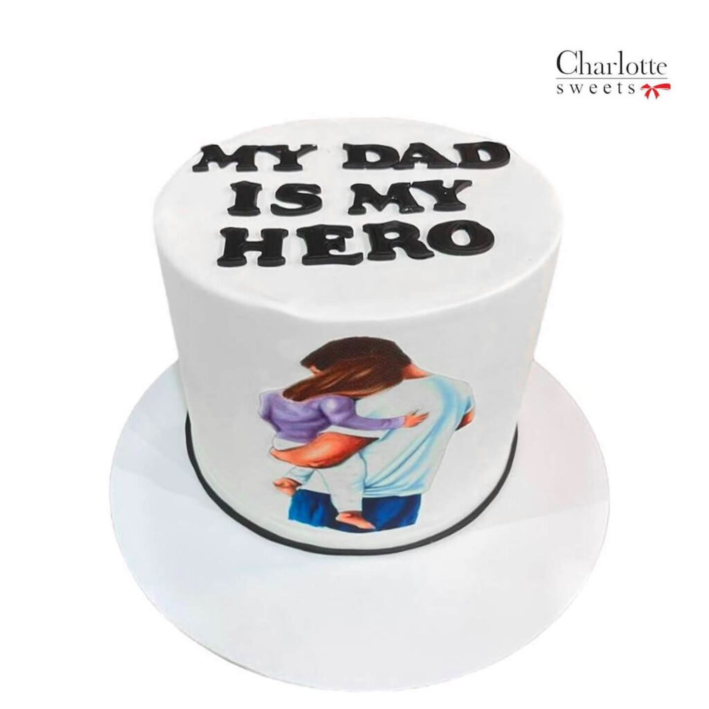 This touching cake is a heartfelt tribute to a special dad. The simple yet powerful message, “My Dad is My Hero,” is paired with a heartwarming image of a father and child. It’s a perfect way to express your love and gratitude for your hero. Order online for next-day delivery in Dubai, Sharjah, and Ajman.