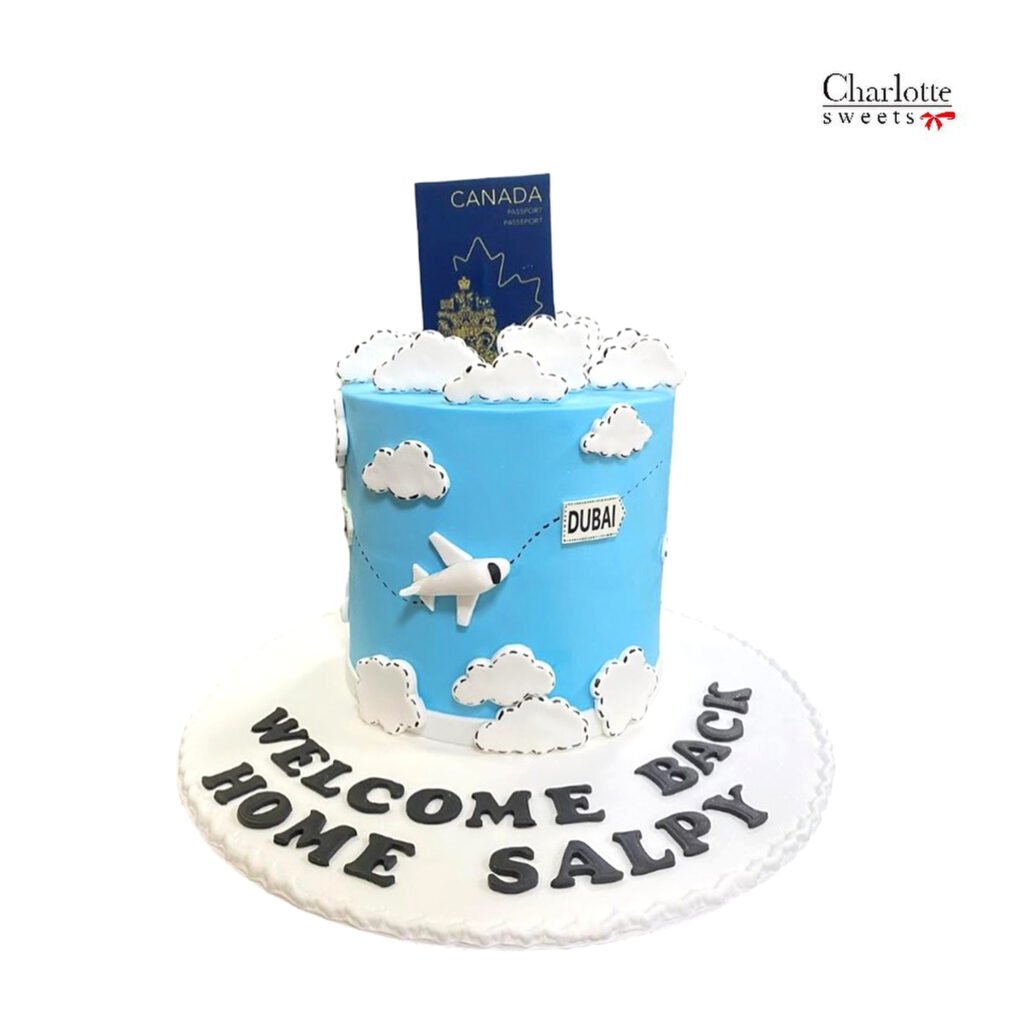 This heartwarming cake is the perfect way to welcome someone back from their travels. The blue sky backdrop, airplane, passport, and clouds create a sense of adventure and homecoming. The personalized message “Welcome Back ” adds a special touch.. this cake is sure to bring a smile to your face. Order online for next-day delivery in Dubai, Sharjah, and Ajman.