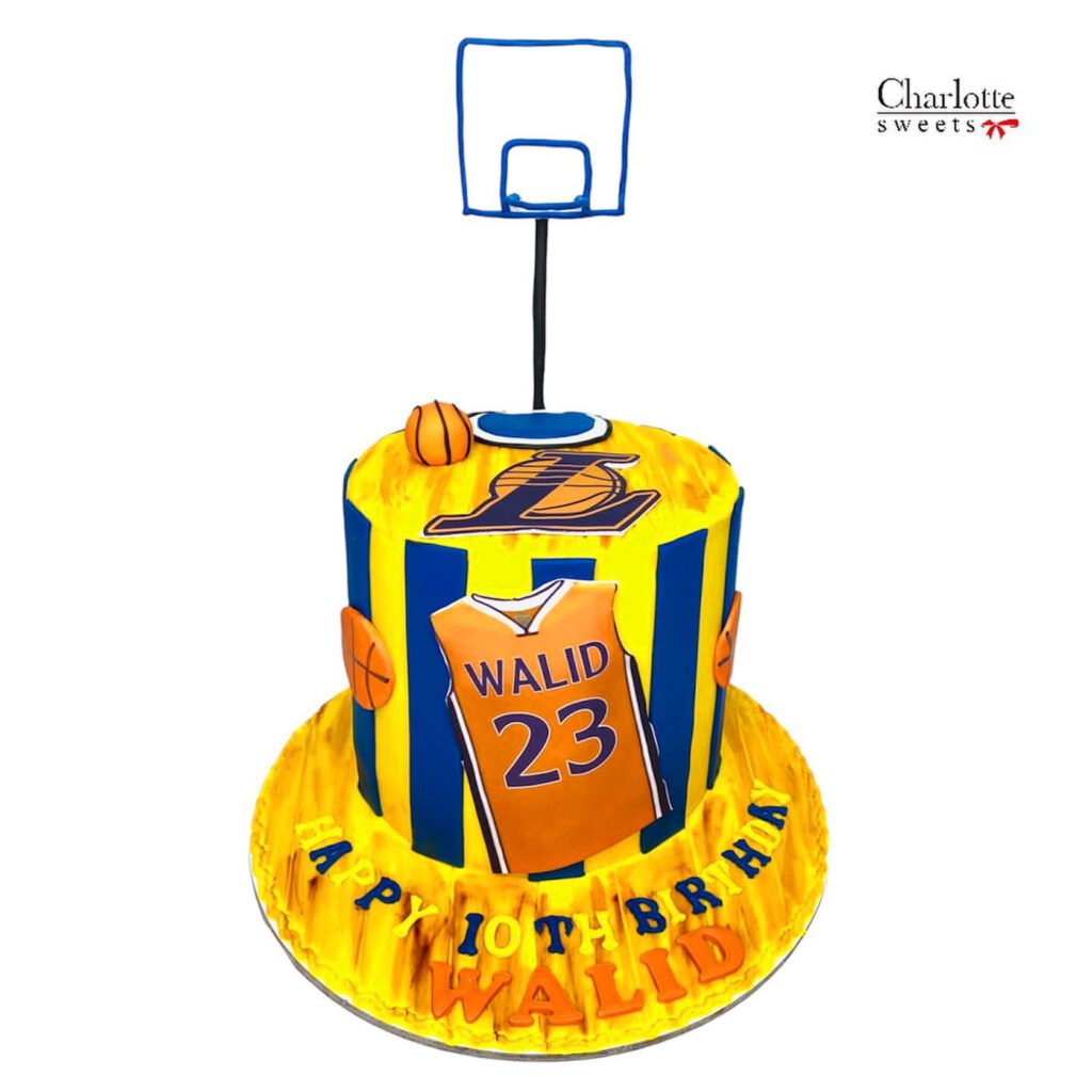 This basketball-themed cake is the perfect way to celebrate a young basketball fan’s birthday. Featuring the iconic Lakers jersey and basketball, this cake is a slam dunk of flavor and style. Perfect for birthdays, celebrations, or simply a sweet treat, this cake is sure to bring a smile to your face. Order online for next-day delivery in Dubai, Sharjah, and Ajman.