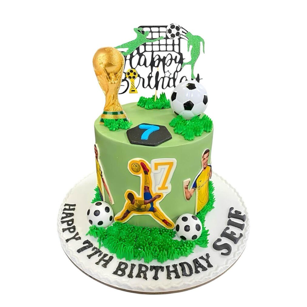Football Cake | Cristiano Ronaldo Cake | Football Theme, Trophy Topper & Player Cutouts | Perfect for Kids’ Soccer-Themed Celebrations!