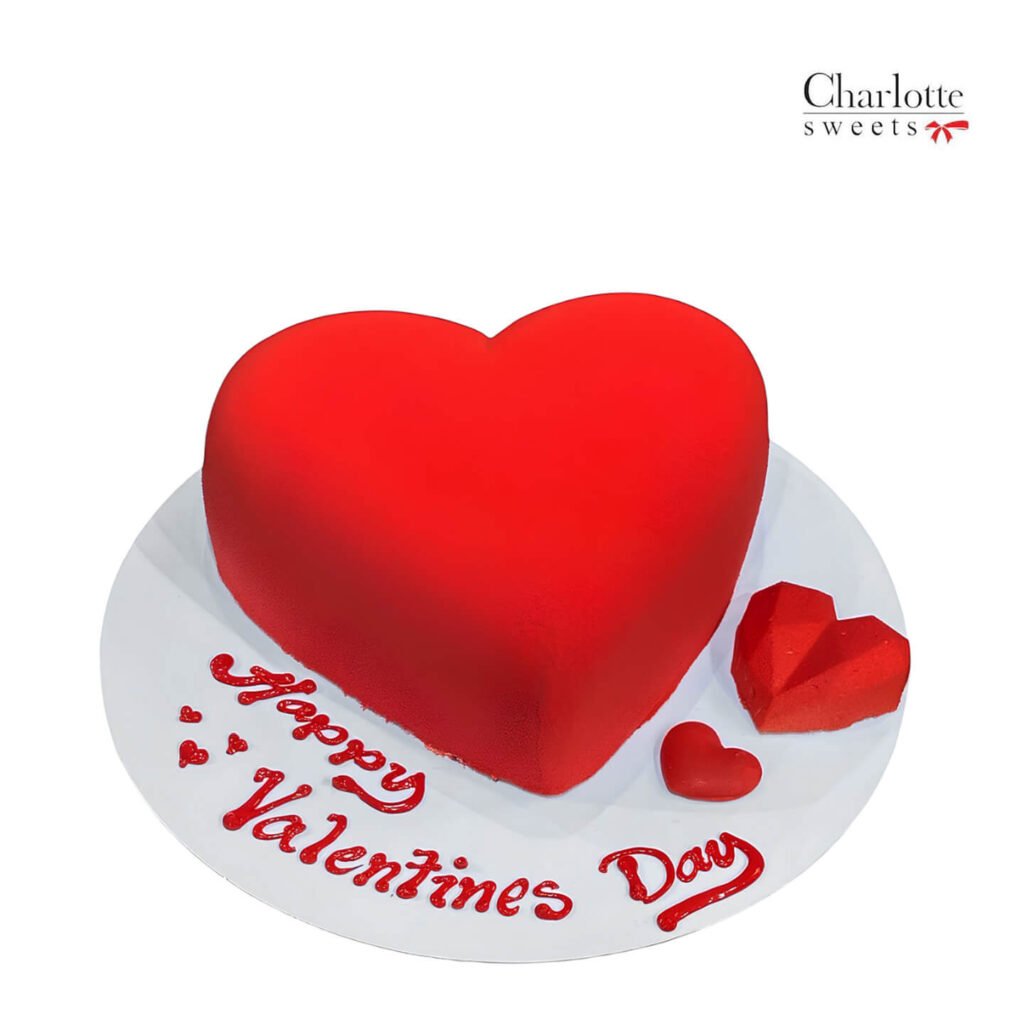 This is a heart-shaped cake, perfect for Valentine’s Day! It’s a vibrant red color and features a small heart decoration. The message “Happy Valentine’s Day” is written on the base in a decorative script. It’s a simple yet elegant way to celebrate love. Order online for next-day delivery in Dubai, Sharjah, and Ajman.