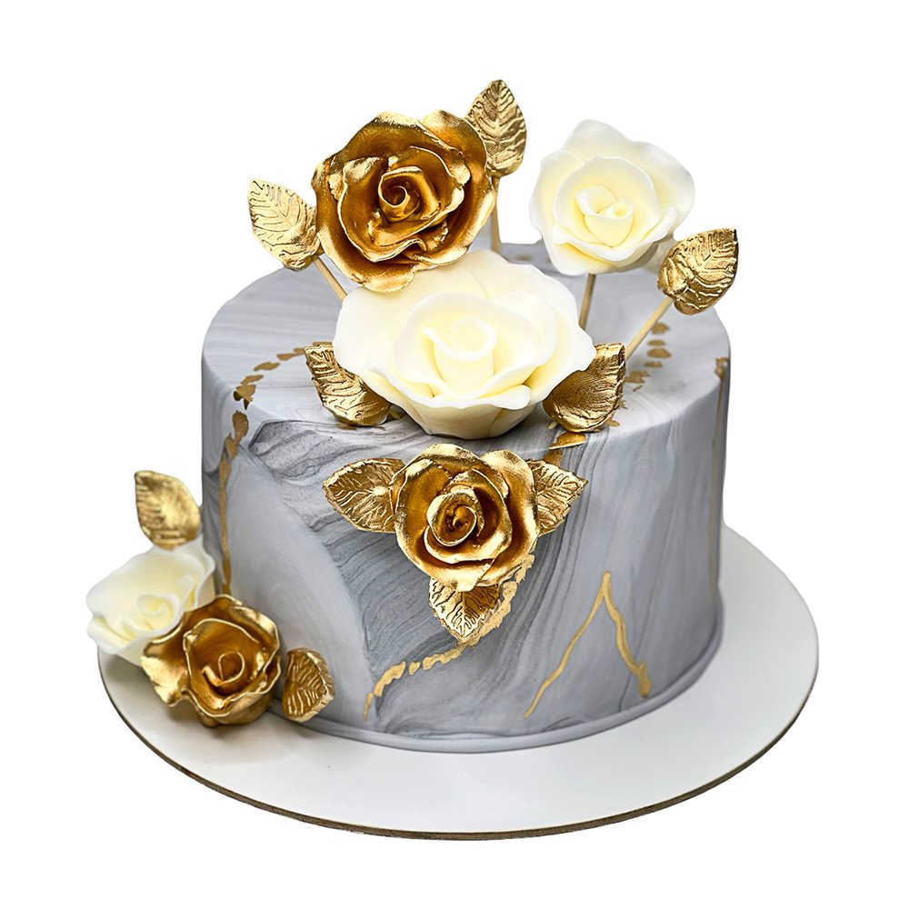- Marble Cake with Gold Roses, Luxury Wedding Cake, Anniversary Cake