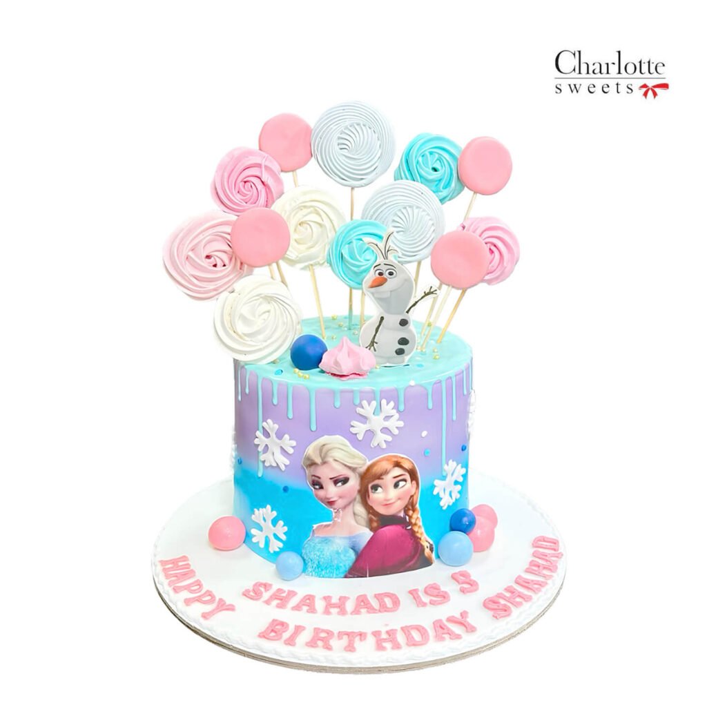 This enchanting Frozen-themed cake is a magical treat for any fan! Featuring Elsa and Anna, this cake is perfect for a birthday celebration. The pink frosting, delicate decorations, and the personalized message create a whimsical and delightful dessert. Order now and let your little one’s Frozen dreams come true!. Order online for next-day delivery in Dubai, Sharjah, and Ajman.