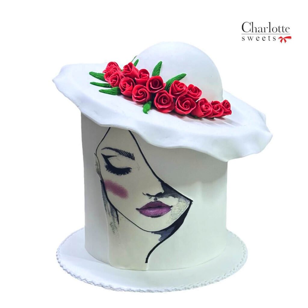 This Hat cake is, perfect for celebrating a special birthday or a momentous occasion. Shaped like a hat and flowers on top of it , this unique creation is crafted with meticulous attention to detail, featuring a lady wearing a hat. adding an extra touch of brilliance. Order online for next-day delivery in Dubai, Sharjah, and Ajman.