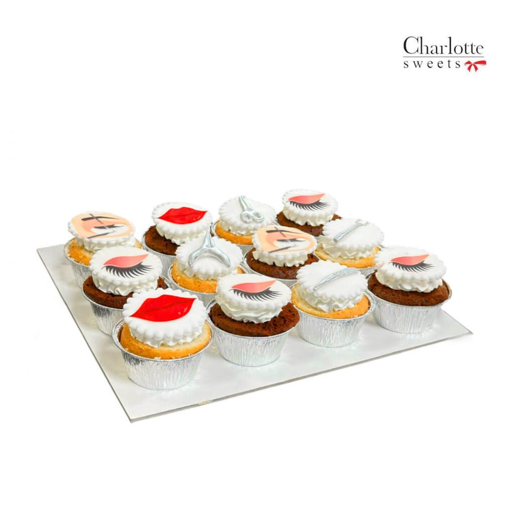 Indulge your sweet tooth and your love for all things beauty with this delightful cupcake set. Each cupcake is adorned with a unique beauty-themed topper, including lips, eyelashes, and a makeup brush. The cupcakes are frosted in a creamy white and topped with a touch of sparkle, creating a truly glamorous treat. Order online for next-day delivery in Dubai, Sharjah, and Ajman.