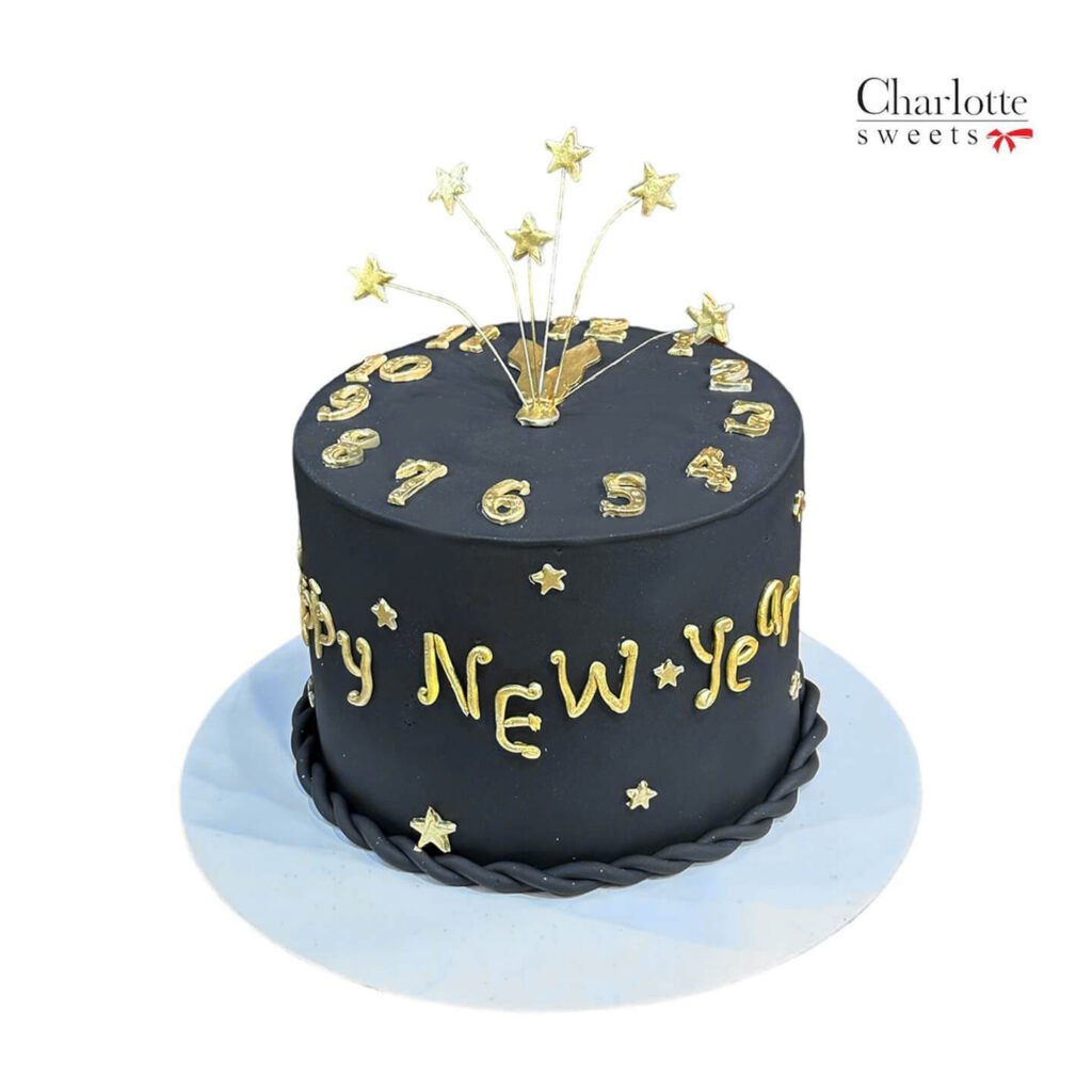 This stunning cake is the perfect way to celebrate the start of a new year. The elegant black base is adorned with a golden clock face and sparkling stars, creating a festive and sophisticated look. Order online for next-day delivery in Dubai, Sharjah, and Ajman.