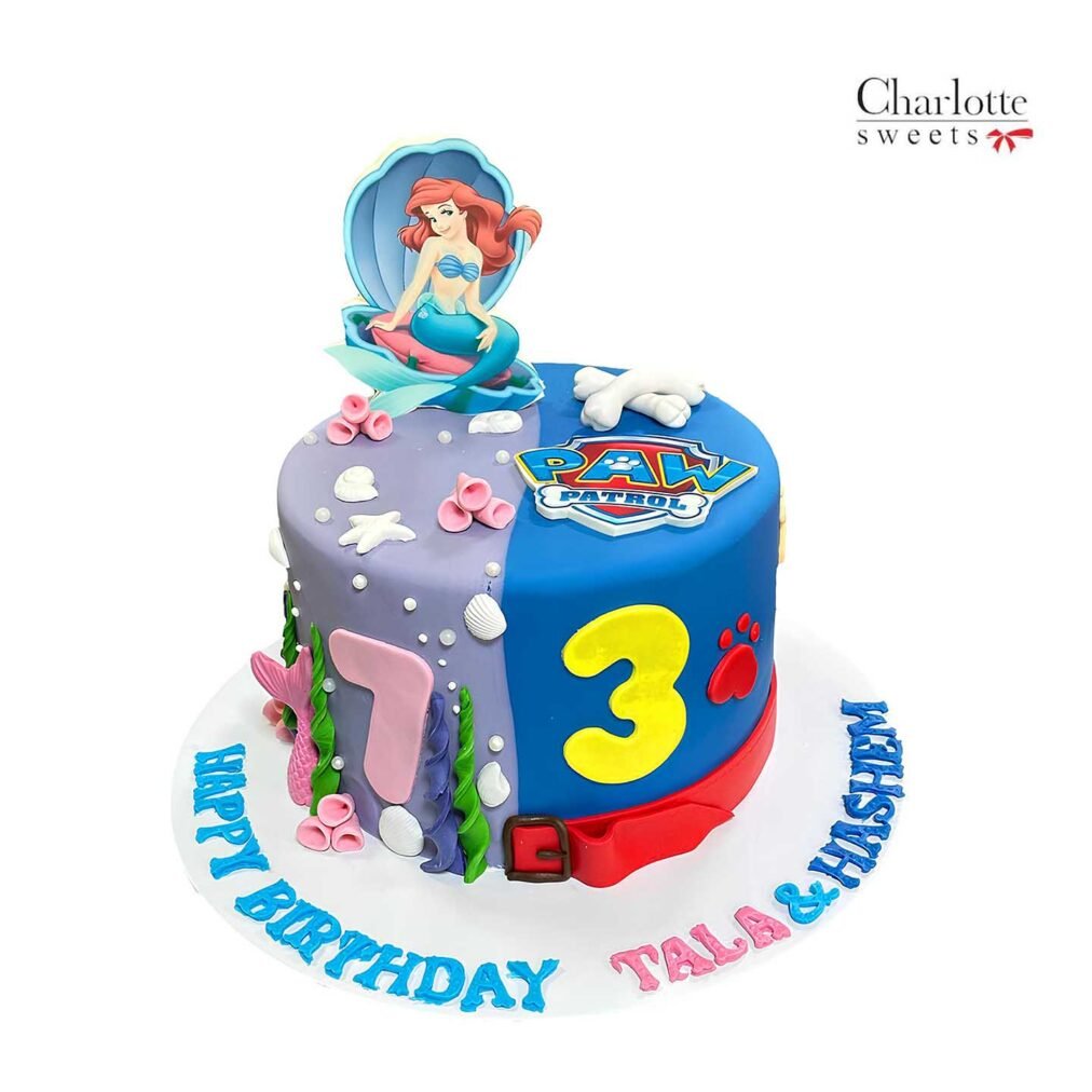 Split Cake Design | Ariel And PAW Patrol Cake | 7th Birthday | 3rd Birthday.