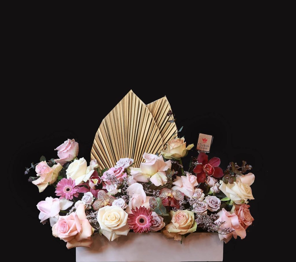 Indulge in the luxury of this exquisite floral arrangement, featuring a stunning array of roses, orchids, gerberas, and more. The elegant gold dried flowers adds a touch of sophistication, while the vibrant hues create a sense of opulence. Perfect for birthdays, anniversaries, or any special occasion. Order online for next-day delivery in Dubai, Sharjah, and Ajman