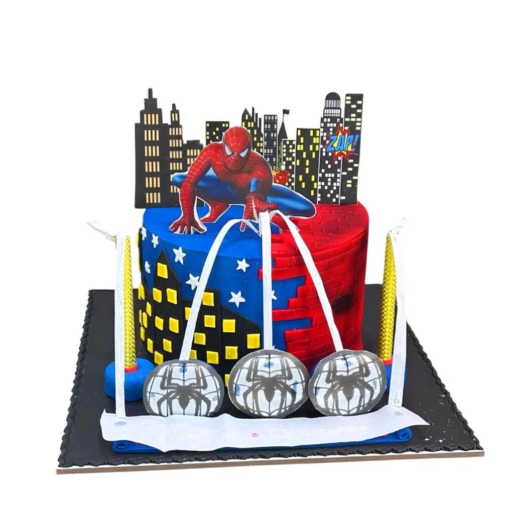Spiderman Theme Cake | Spiderman Birthday Cake | Cityscape Design, Web Details & Dynamic Spidey Topper | Perfect for Boys’ Birthdays!