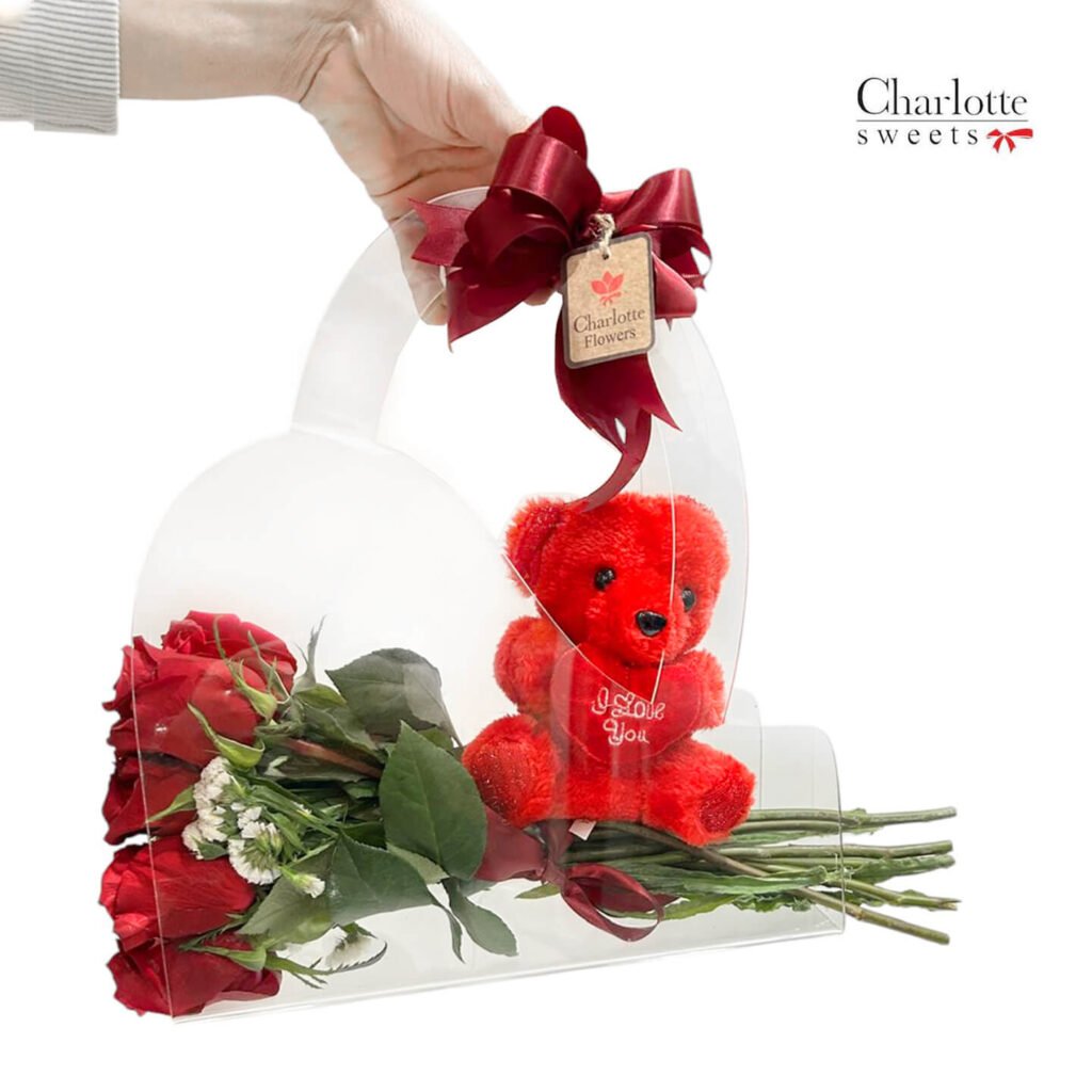 Teddy Bear: A cuddly red teddy bear holding a heart-shaped “I Love You” sign adds a touch of sweetness.