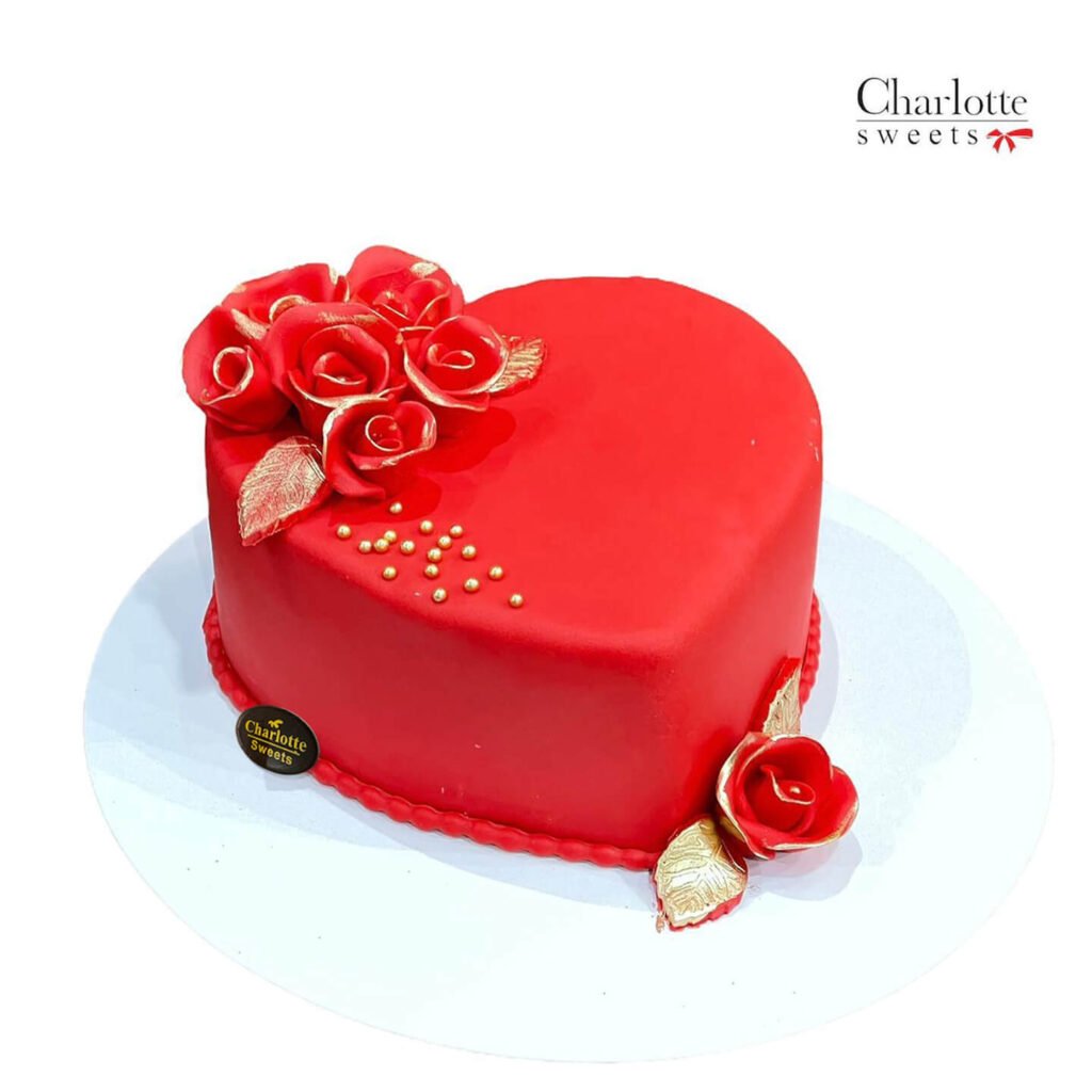 This elegant heart-shaped cake is a perfect expression of love and affection. The vibrant red color, combined with delicate rose decorations, this heart cake creates a romantic and sophisticated look. Order online for next-day delivery in Dubai, Sharjah, and Ajman.