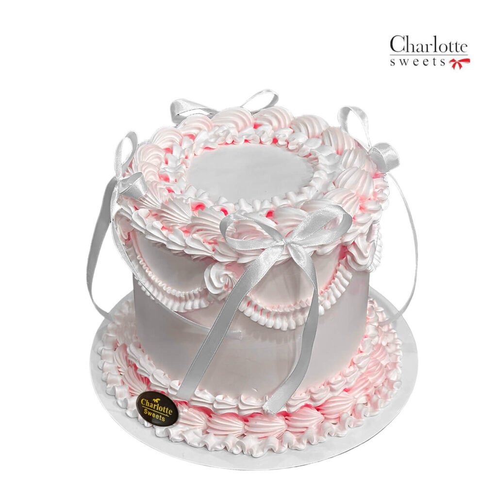 This delicate cake is a sight to behold. The pristine light pink base is adorned with a charming array of piped buttercream bows and swirls in soft pink hues, creating a romantic and feminine look. Order online for next-day delivery in Dubai, Sharjah, and Ajman.